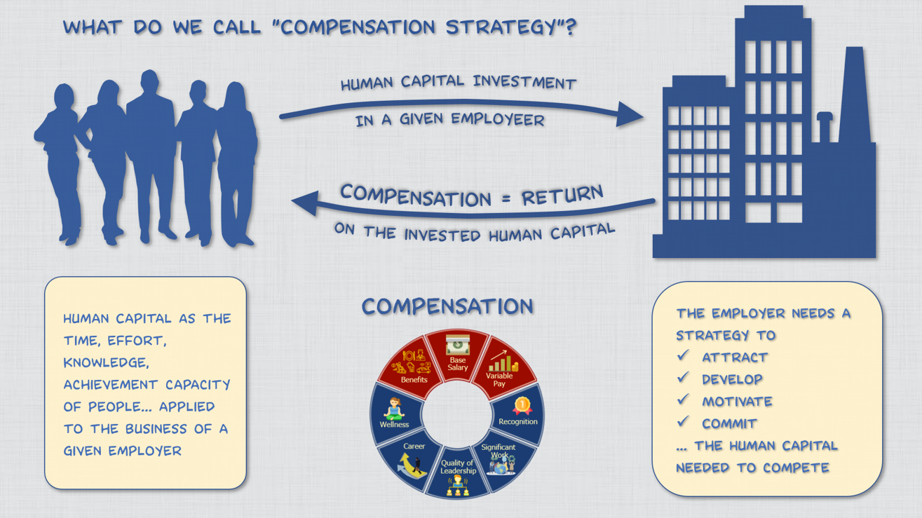 Business results are achieved through the use of the knowledge, effort and time of people placed at the service of a given employer. People invest their Human Capital in a certain employer in exchange for a return on that invested capital. And that return is what we call... Compensation.
